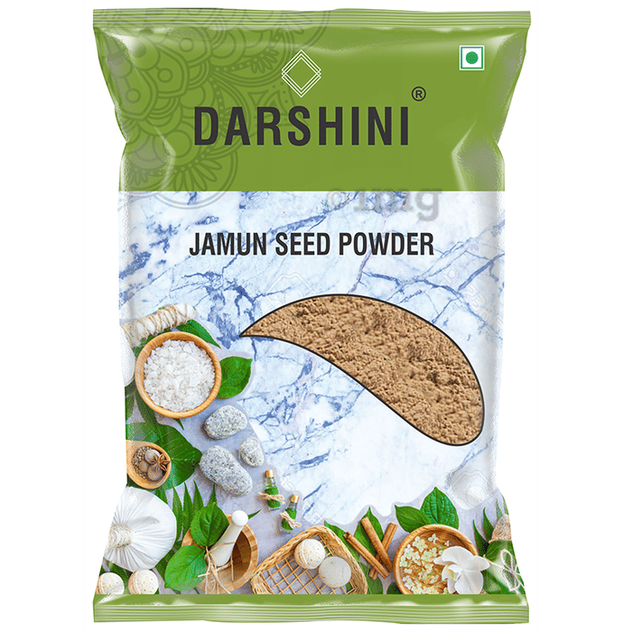 Darshini Jamun Seed Powder is rich in active ingredients like jamboline and jambosine which provide several health benefits. It improves digestion and aids in weight loss while reducing the symptoms of diabetes like excessive urination and thrusting. Jamun's astringent and carminative properties are helpful against dysentery, diarrhoea, gas, and flatulence. Additionally, the powder is beneficial for managing skin-related problems like allergies, rashes, pimples, dark spots, and pigmentation.
