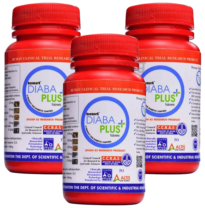 Deemark Diaba Plus Tablet is a product containing a specific combination of Ayurvedic herbs intended for nutritional support. It may support glucose metabolism and help maintain normal blood sugar levels.