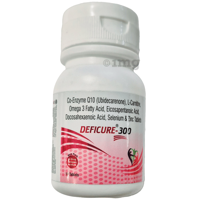 Information about Deficure 300 Tablet with CoQ10, L-Carnitine, Omega-3 Fatty Acids, Selenium & Zinc Tablet
