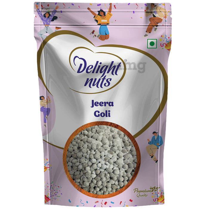 Delight Nuts Jeera Goli is prepared with cumin, dry mango, and a blend of spices. It is suitable for use as an after-meal refreshment and may assist in providing a tangy, spiced flavour experience. The pack is designed for convenient consumption and storage.