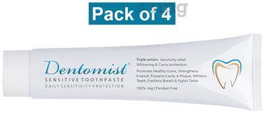 Dentomist Sensitive Toothpaste is specially formulated for sensitive teeth. It soothes the nerve ends and builds a protective shield to relieve sensitivity. It also helps prevent some of the root causes of sensitivity and provides long hours of oral protection. It is enriched with sodium monoflurophosphate. This toothpaste strengthens the enamel, protects against cavities, promotes good oral care and works effectively from the first use. It is designed to fight decay and plaque and helps to kill 99% of germs and bacteria which are the main cause of damage to the teeth and gums.