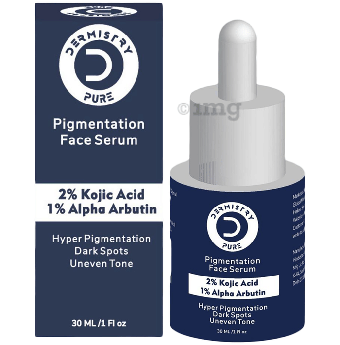 Dermistry Pure 2% Kojic Acid 1% Alpha Arbutin Pigmentation Face Serum is a uniquely crafted skincare solution formulated to address issues related to hyperpigmentation, dark spots, and uneven skin tone. Enriched with 2% Kojic Acid and 1% Alpha Arbutin, it may help inhibit melanin production, brighten the complexion, and create a more even skin tone. The serum's lightweight, fast-absorbing formula penetrates deeply to manage the appearance of age spots, freckles, melasma, and post-inflammatory pigmentation. With powerful antioxidant properties, it can provide protection against environmental stressors while supporting overall skin hydration and radiance. Suitable for regular use, this serum may work effectively to promote a glowing, even-toned complexion, fitting seamlessly into your skincare routine.