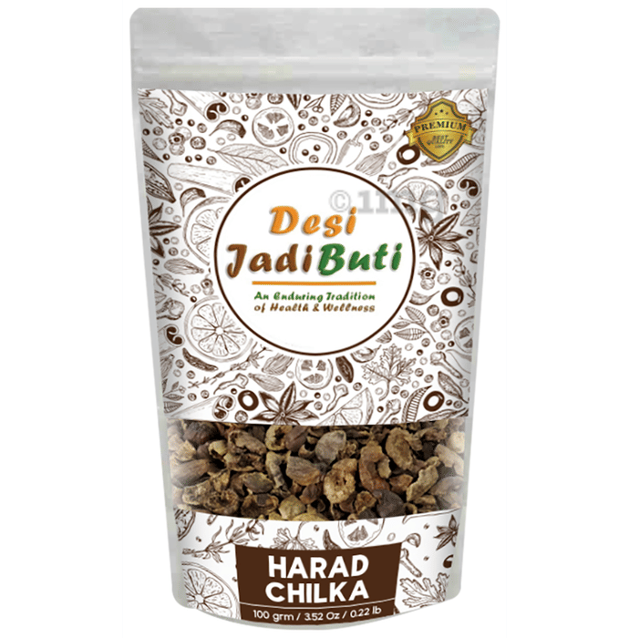 Desi Jadi Buti Harad Chilka is a dietary supplement that helps enhance overall well-being. It assists in assuaging acne and ulcer formation. The powder aids in achieving optimal health. The composition can be beneficial in improving your digestive health.