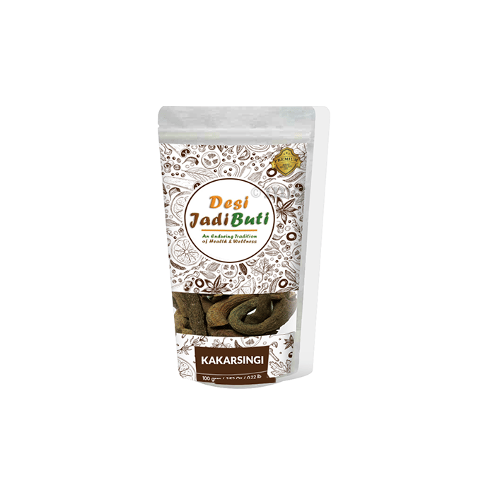 Desi Jadi Buti Kakarsingi is an Ayurvedic powder that is said to have beneficial properties for your body. It is astringent, expectorant, anti-asthmatic, anti-dysenteric, and styptic. Karkatashringi is used in Ayurveda to cater to cough, asthma, bronchitis, phthisis, catarrhal fever, enlarged glands and externally on obstinate skin diseases, bleeding gums, epistaxis, leucorrhea, and other mucous discharges.