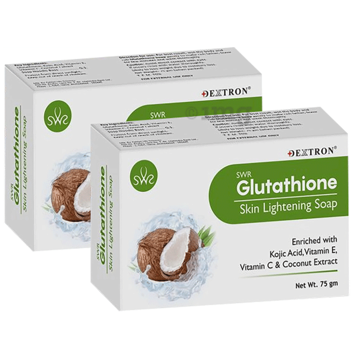 Dextron Glutathione Skin Lightening Soap (75gm Each) Coconut is a cleansing bar enriched with glutathione, coconut extract, vitamin C, and vitamin E. With a total fatty matter (TFM) content of 76%, the soap is designed to help offer a smooth and rich lather when used with water. The presence of antioxidant vitamins such as vitamins C and E, alongside glutathione, may help support cleansing and hydration of the skin. Coconut extract can add a moisturising component to the formulation, and the high TFM content is indicative of foaming characteristics. This soap is intended for external use only and can be used as part of a regular bathing routine for gentle cleansing.