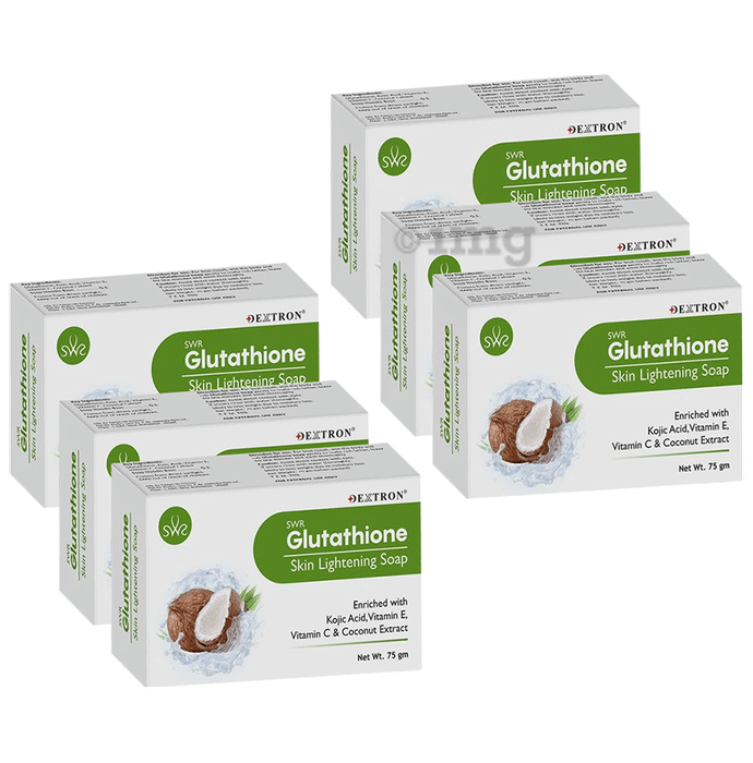 Dextron Glutathione Skin Lightening Soap (75gm Each) Coconut is a cleansing bar enriched with glutathione, coconut extract, vitamin C, and vitamin E. With a total fatty matter (TFM) content of 76%, the soap is designed to help offer a smooth and rich lather when used with water. The presence of antioxidant vitamins such as vitamins C and E, alongside glutathione, may help support cleansing and hydration of the skin. Coconut extract can add a moisturising component to the formulation, and the high TFM content is indicative of foaming characteristics. This soap is intended for external use only and can be used as part of a regular bathing routine for gentle cleansing.