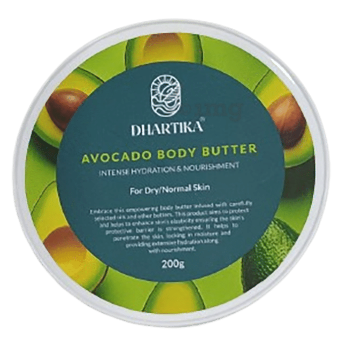 Dhartika Avocado Body Butter Cream is a moisturising formula crafted for dry to normal skin. Infused with a carefully chosen blend of oils and butters, this intensely hydrating body butter may help support the skin's elasticity contributing to the reinforcement of the skin’s natural barrier. The nourishing properties of avocado, sunflower oil, shea butter, and kokum butter can help provide deep hydration and daily care. With continued use, it may help soften skin texture, lock in moisture, and offer long-lasting comfort and support for dry or rough areas.