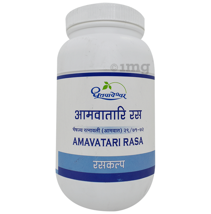 Dhootapapeshwar Amavatari Rasa is an Ayurvedic formulation available in tablet form. Amavatari Rasa is known to have anti-ageing properties, which may help promote overall well-being and vitality. It is also believed to have wound-healing properties, which may aid in the healing process of wounds.