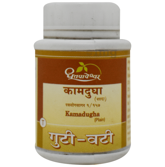 Dhootapapeshwar Kamdugha Plain is an Ayurvedic formulation that can be used to help balance excess heat (pitta) in the body. It may support digestive comfort, routine acidity balance, and relief from burning sensations in the throat, chest, abdomen, palms, and soles. The preparation is also used to maintain overall physiological balance and support day-to-day comfort in heat-related disturbances.