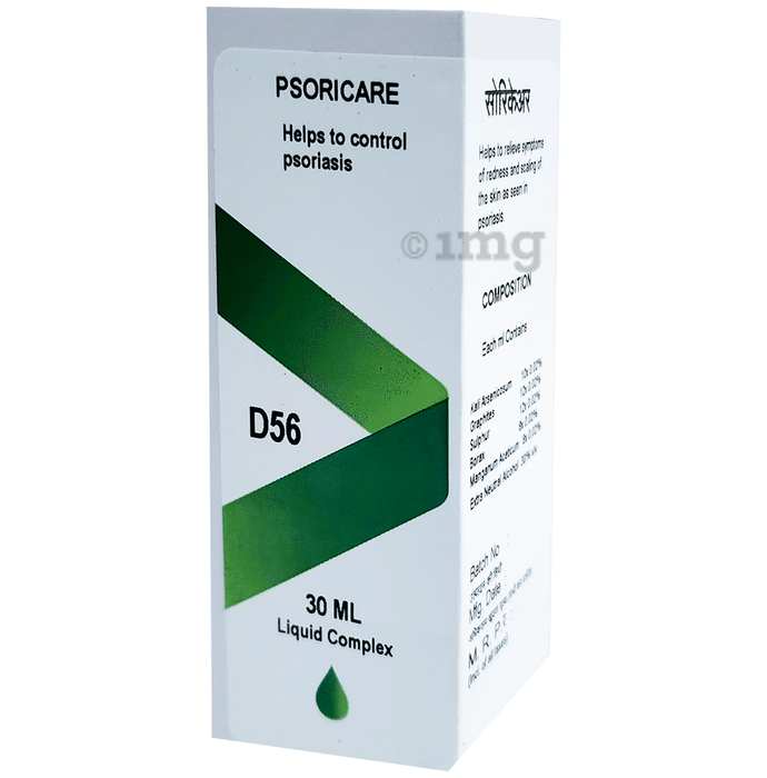 Doliosis D56 Psoricare Drop aids in the removal of white plaques from the skin as well as the reduction of skin inflammation and Psoriasis. It also aids in managing eczema and other related skin issues.