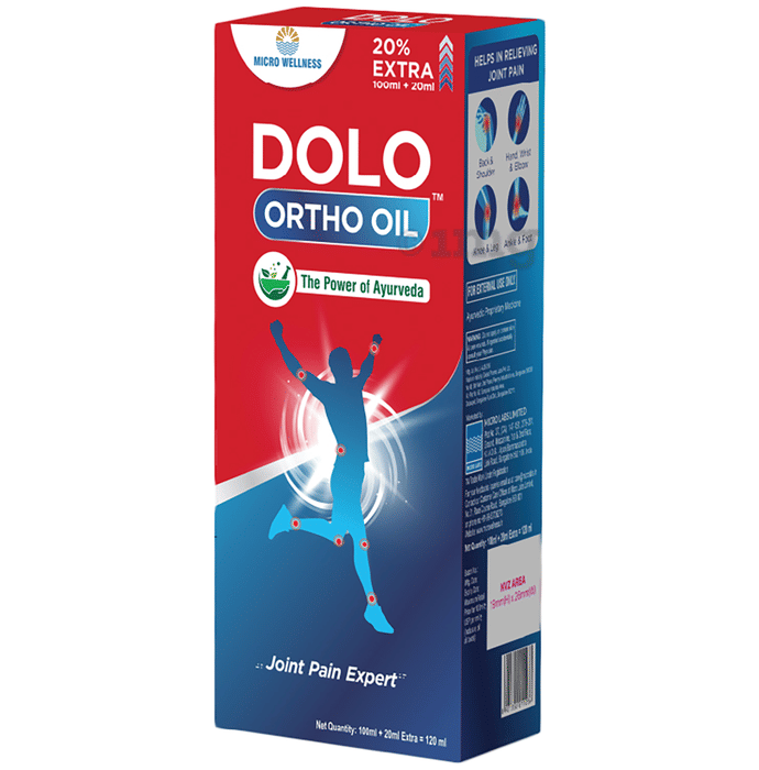 Dolo Ortho Oil is an Ayurvedic proprietary formulation developed using herbal oils applied for external musculoskeletal support. It contains Gaultheria fragrantissima (Gandhapura Patra Taila), Cinnamomum camphora (Camphor), Mentha piperita (Pudina Satva), and Capsicum annum oleoresin—herbal actives with aromatic and warming properties. The oil is further enriched with Vitex negundo (Nirgundi), Pinus roxburghii (Turpentine oil), Eucalyptus globulus (Nilgiri Taila), and Linum usitatissimum (Atasi Taila). These oils can help support local comfort when massaged over affected joints or muscles. The blend is designed for external application to assist with stiffness, tightness, and general discomfort associated with joint mobility.