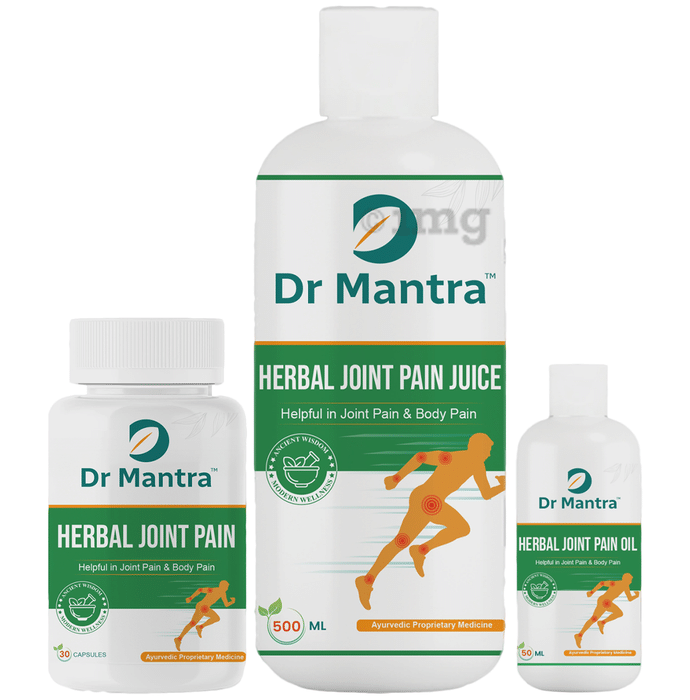 Dr Mantra Combo Pack of Herbal Joint Pain Capsule (30), Juice (500ml) & Oil (50ml)