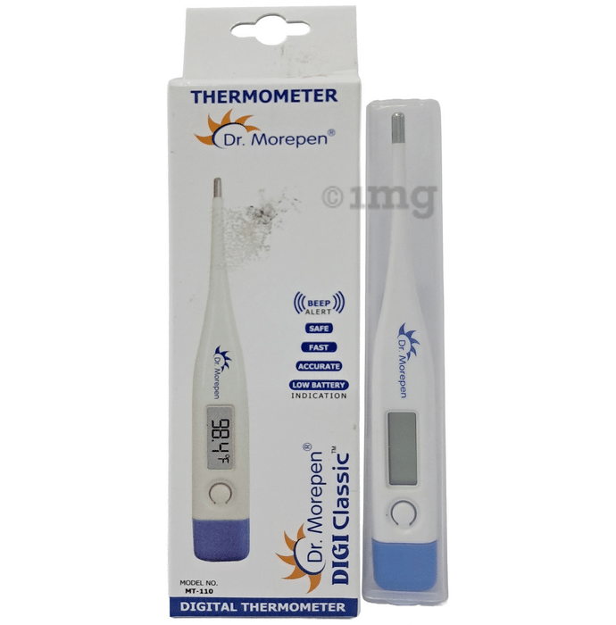 Dr Morepen MT 110 DIgital Thermometer is fast, accurate and easy to use, which gives a reading within 20 seconds. It can be used in the oral cavity, rectal cavity, or under the armpit. It has a rigid tip and is also water-resistant.