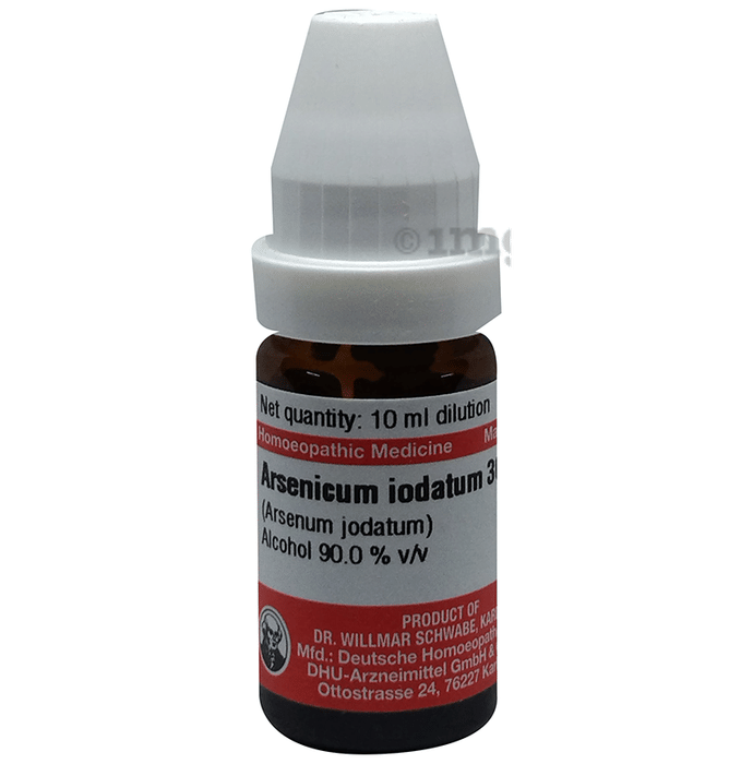 Dr Willmar Schwabe Germany Arsenicum Iodatum Dilution reduces skin inflammation. It helps relieve coughs and colds. It also deals with itching and skin irritation.