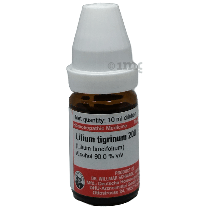 Dr Willmar Schwabe Germany Lilium Tigrinum (Lilium Lancifolium) Dilution is a homoeopathic medicine that has many spheres of action. It is useful for uterine or ovarian complaints. It is helpful for headaches, neuralgic pains, tonsil enlargement, bloating, nausea, abnormal fullness and constipation. It is also useful for urinary complaints.