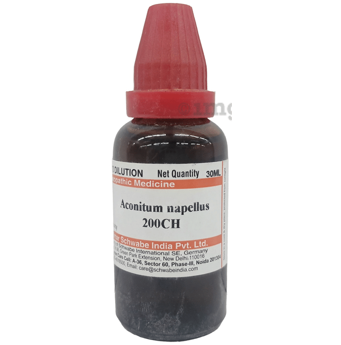 Dr Willmar Schwabe India Aconitum Napellus Dilution is a homoeopathic medicine which is an effective remedy for physical or mental restlessness. It helps in reliving heaviness of head, sensation of pressure inside the brain and burning headaches. It is also beneficial for eyes and helps in reducing inflammation and redness in eyes. Stomach related ailments such as gastritis and burning pain can also be relieved by its use.