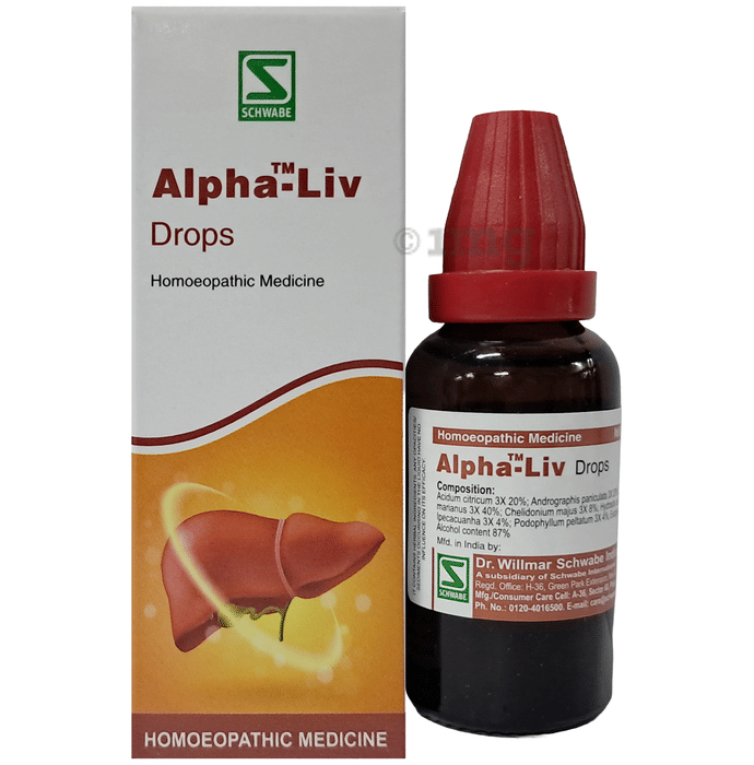 Dr Willmar Schwabe India Alpha-Liv Drop The liver plays a key role in metabolism. It has anabolic and catabolic, exocrine and endocrine functions. The liver is a blood reservoir that filters and stores different substances (e.g. glycogen, vitamins). It is the site of serum protein (e.g. albumin, prothrombin, fibrinogen) and enzyme synthesis. Metabolic processes (e.g. bilirubin, hormone, carbohydrate and lipid turnover) and removing toxic products are important liver functions. Alpha-Liv drops help promote the healthy functioning of the liver. It helps in the detoxification of toxins from the liver.