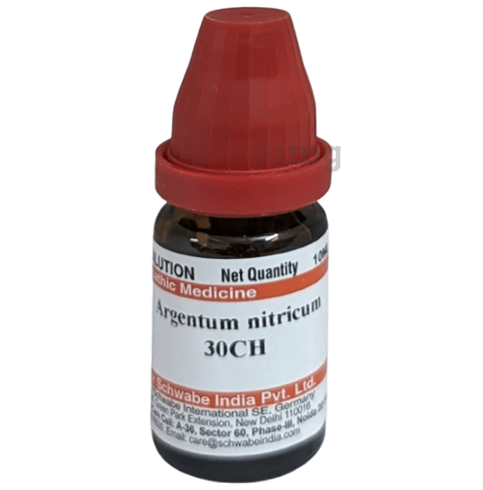 - Take 5 drops of Dr Willmar Schwabe India Argentum Nitricum Dilution in 1/4th cup of water thrice a day or as directed by the physician.