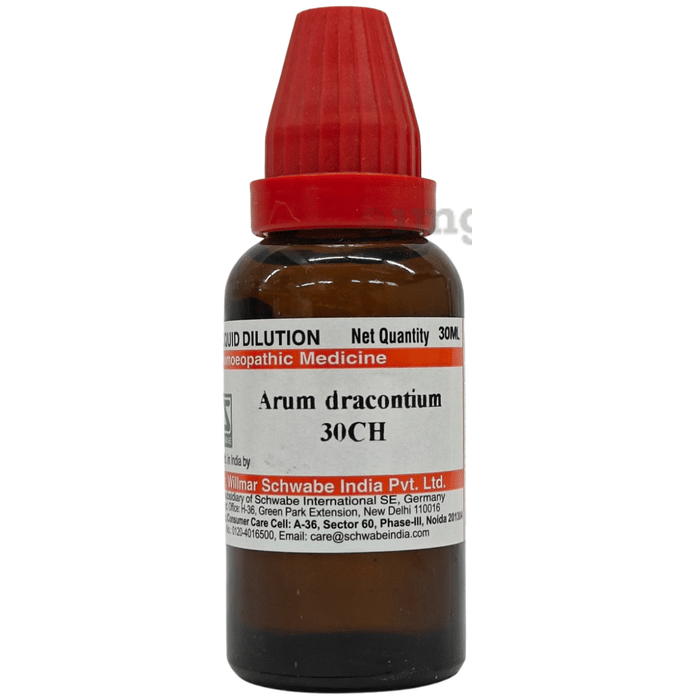 Dr Willmar Schwabe India Arum Dracontium Dilution 30 CH is a homoeopathy medicine intended for use as a homeopathic remedy.