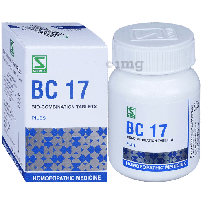 Dr Willmar Schwabe India Biocombination 17 Tablethelps relieve constipation, reduce the size of pile mass and associated pain and blood loss. The medicine is used for engorged rectal veins (Piles) that is indicated for bleeding haemorrhoids, fissures, internal piles with backache, helps in all kinds of piles, external piles with stinging pain, bleeding piles with or without pain. It helps with the hemorrhoids that can also occur due to sitting for long period, constipation and obesity.