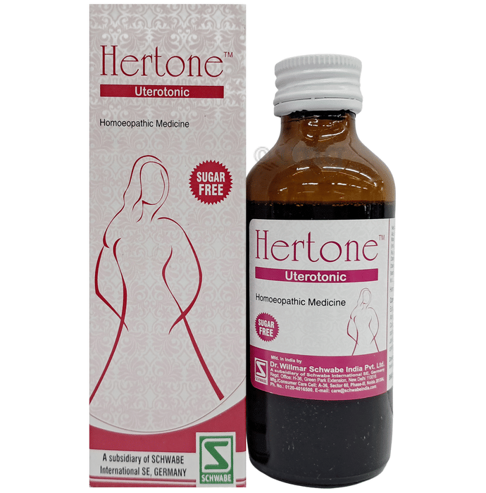 Dr Willmar Schwabe India Hertone Syrup is a uterine tonic that helps in amenorrhoea, menstrual irregularities and dysmenorrhoea. It helps manage symptoms of premenstrual syndrome (PMS) like mood swings, tender breasts, food cravings, fatigue, irritability and depression