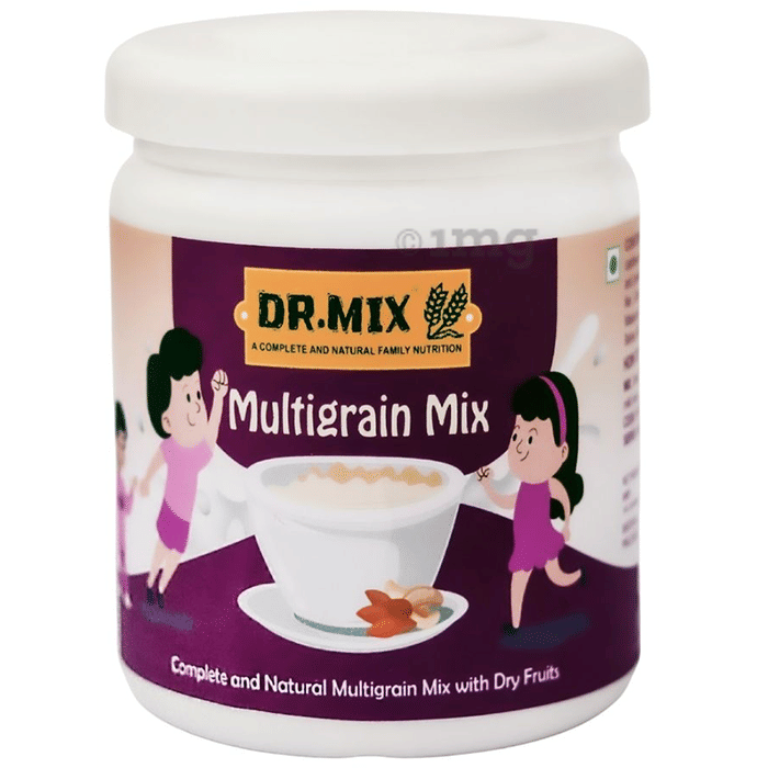 Dr. Mix Multigrain Mix can offer a complete and natural family nutrition supplement crafted from a rich blend of cereals, millets, pulses, and dry fruits. It combines the goodness of Bajra, Corn, Jowar, Barley, Wheat, Rice, and dry roasted nuts like Almonds and Cashews. This mix is designed to help provide a wholesome meal option, rich in protein, dietary fibre, and iron, catering to the nutritional needs of all family members. Its natural formulation can help support nutrient intake without added preservatives, colours, or flavours.