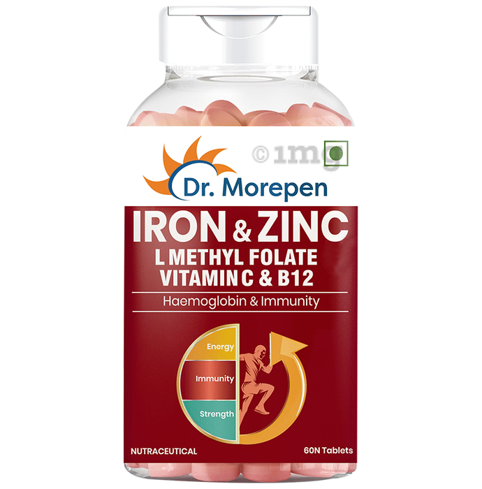 Information about Dr. Morepen Iron & Zinc with Vitamin C & B12 | For Energy & Haemoglobin| Tablet