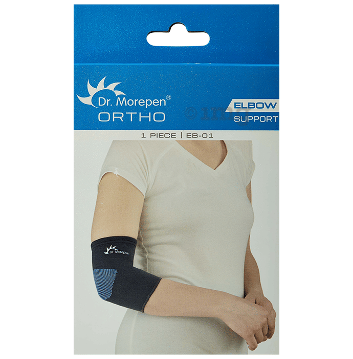 Dr. Morepen Ortho EB 01 Elbow Support Small is designed to provide stable support to the elbow joint through uniform compression. Made with stretchable fabric, it ensures comfort, durability, and unrestricted movement. Its 360° comfort design delivers balanced compression around the elbow, making it suitable for everyday use. Lightweight and easy to wear, it can be used for post-casting care, recovery, sports activity, or daily support.