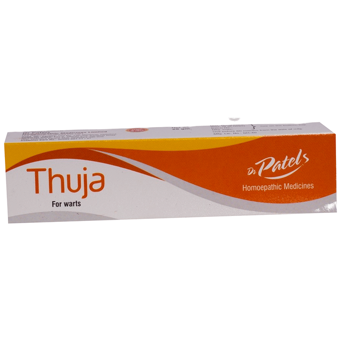 Dr. Patel's Thuja Ointment is a homoeopathic remedy prepared from the Thuja occidentalis herb. It is used for the management of skin problems such as warts and fungus growth. This product can help to deal with polyps, corns, brown spots, eruptions and warts.