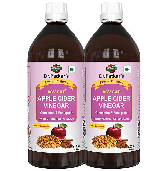 Dr. Patkars Apple Cider Vinegar Cinnamon & Fenugreek with the Mother (500ml Each) is unfiltered and undiluted vinegar that goes through a double fermentation process and contains the mother of vinegar. It has 5% acidity levels and helps maintain the pH of the stomach and detoxify the body.
