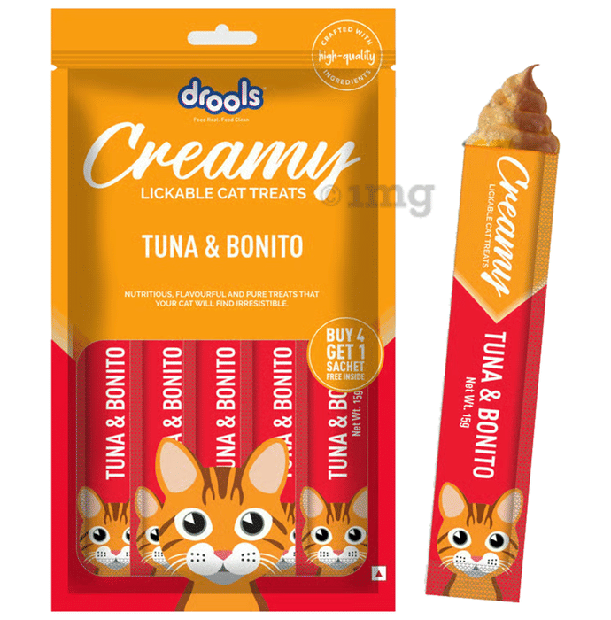drools creamy lickable cat treats (15gm each) tuna & bonito buy 4 get 1