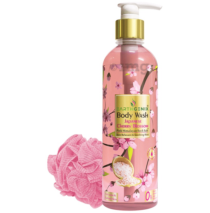 Earthgenix Body Wash Pink Himalayan Rock Salt Japanese Cherry Blossom with Loofah Free