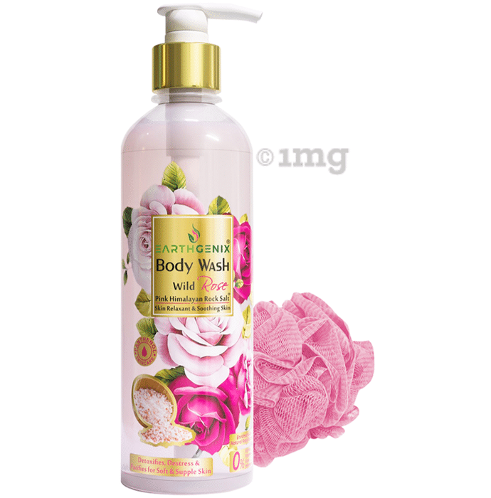 Earthgenix Body Wash Pink Himalayan Rock Salt Wild Rose with Free Loofah