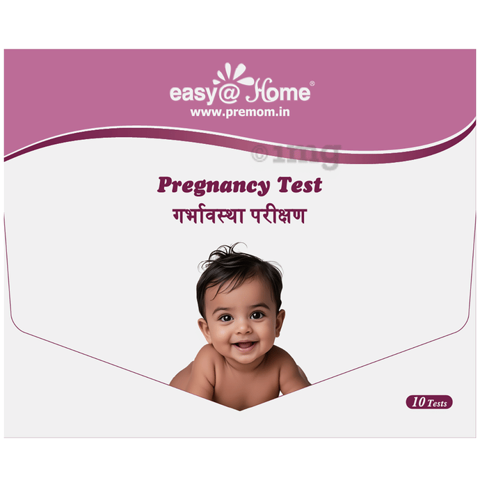 Easy@ Home Pregnancy Test Kit is a home-based testing device that helps in detecting pregnancy by identifying the presence of human chorionic gonadotropin (hCG) hormone in urine. The presence of hCG is associated with pregnancy, and this test provides a quick confirmation. The kit delivers reliable results within 5–10 minutes and is designed for convenient self-testing at home. It is easy to use, provides clear line-based results, and can be integrated with the Premom App to track and record pregnancy test results digitally.