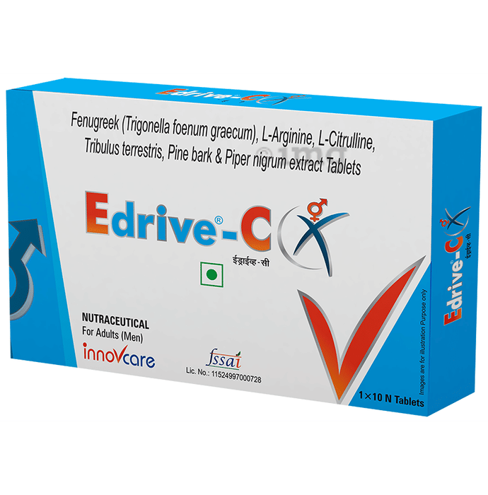 Edrive-C Tablet is a dietary supplement designed to help support overall vitality and well-being. Combining ingredients like Fenugreek, L-Arginine, L-Citrulline, Gokshura, Pine Bark, and Bioperine, this tablet can be used as a source of natural extracts.