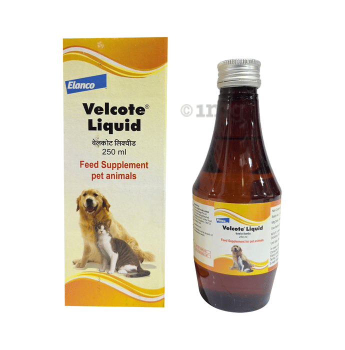 Bayer Velcote Liquid is a feed supplement for pet animals for healthy skin and lustrous coats. It is enriched with essential fatty acids and vitamins that provide essential nutrients. This supplement is ideal for show animals, dogs, puppies, cats, kittens and horses.