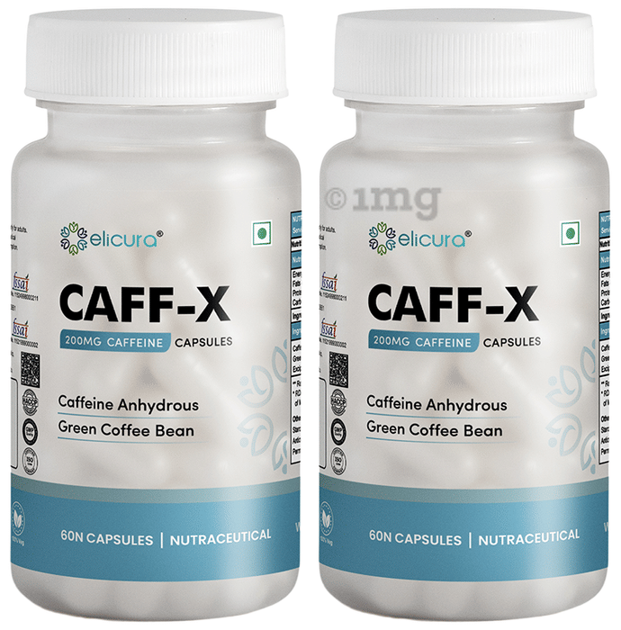 Elicura Caff-X 200mg Caffeine Capsule is a powerful nutraceutical supplement specially formulated to provide clean and sustained energy. It combines 200 mg of Caffeine Anhydrous and 50 mg of Green Coffee Bean Extract, that can help support for mental alertness, physical endurance, and overall vitality. Useful for individuals needing a quick energy surge, such as athletes, fitness enthusiasts, and busy professionals, Caff-X may help combat fatigue and support focus throughout the day. This convenient supplement is produced under GMP and ISO-certified facilities, ensuring premium quality, consistency, and safety.