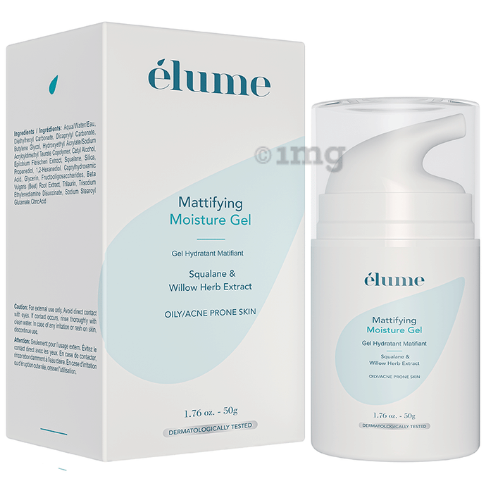 Elume Matifying Moisture Gel is a lightweight, non-greasy gel moisturiser specifically formulated for oily and acne-prone skin. This fast-absorbing gel provides long-lasting hydration without the extra shine, helping to control excess oil and leaving skin with a smooth, matte finish. Enriched with Butylene Glycol, Squalane, and Willowherb Extract, it can be ideal for those seeking balanced hydration and a refreshed feel.