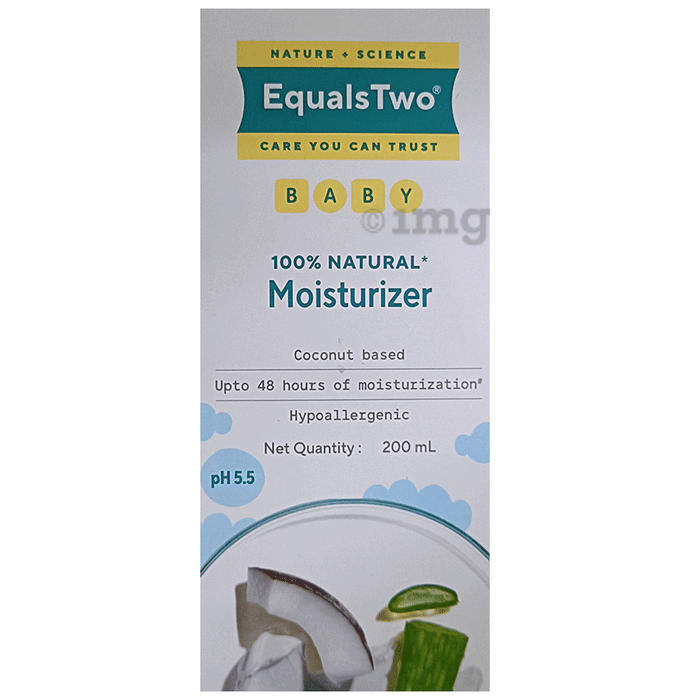 EQUALSTWO Baby Moisturizer is a natural, coconut-based formulation enriched with skin-loving ingredients such as aloe vera, almonds, olive oil, borage, and linseed. This gentle moisturiser may help deeply nourish and protect the babyβs delicate skin, providing up to 48 hours of hydration. With a skin-friendly pH of 5.5 and hypoallergenic properties, it is ideal for everyday use and suitable for all skin types.