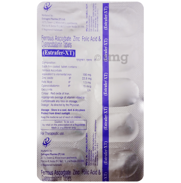 Indications: Estrafer XT tablet is used as a source of iron and folic acid to support nutrition in conditions of iron deficiency. Directions For Use: