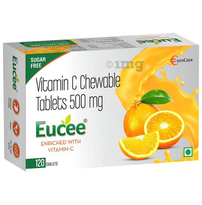 Information about Eucee Vitamin C 500mg for Immunity, Gums, Heart & Skin | Flavour Orange Chewable Tablet