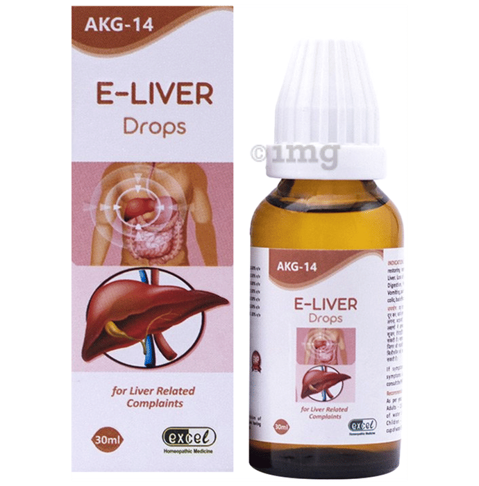 Excel AKG 14 E-Liver Drop is a homoeopathic formulation designed to help manage discomfort related to digestive imbalance and liver-associated weakness. The formulation supports overall digestive comfort and is intended to help individuals experiencing symptoms linked to reduced appetite, digestive disturbance, and general hepatic discomfort.