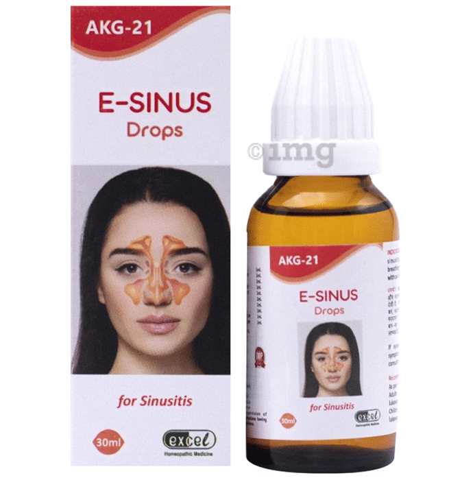 Excel AKG 21 E-Sinus Drop is a homoeopathic formulation designed to help manage discomfort related to sinus congestion and nasal blockage. The formulation is intended to support easier breathing and provide relief from pressure-related sensations in the head and facial region associated with sinus-related concerns.