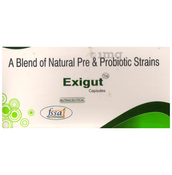 Exigut capsule is a natural blend of prebiotics and probiotics necessary for maintaining healthy gut flora. It helps restore beneficial gut bacteria, which helps prevent various diseases