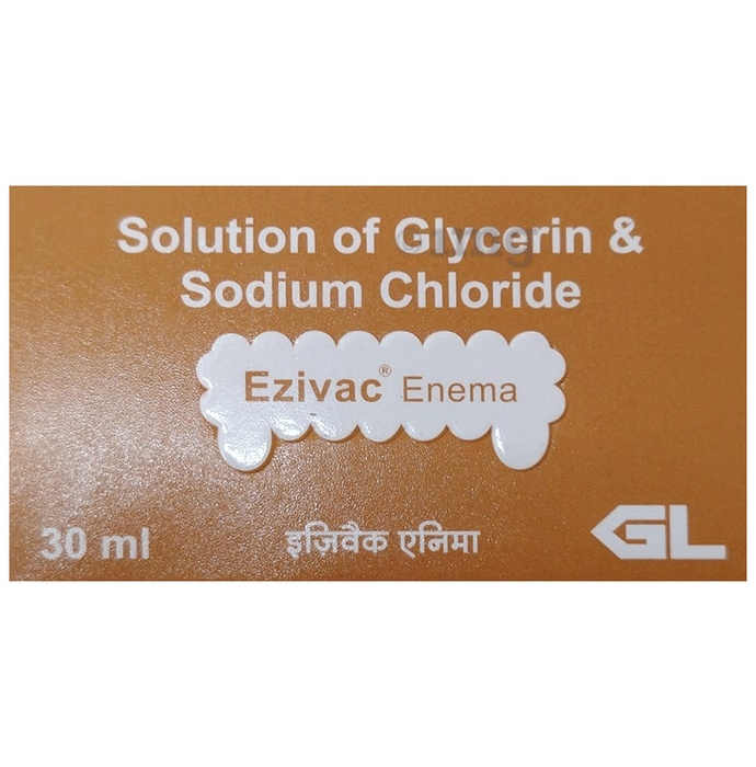 Ezivac is an anorectal preparation which initiates defecation in 30 minutes. Ezivac enema is a 30 ml solution containing glycerin 15% w/v and sodium chloride 15% w/v.