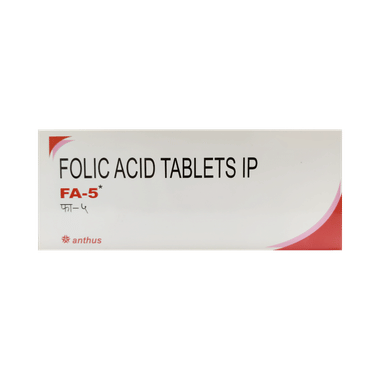 FA 5mg Tablet contains folic acid that Is used to treat persistent weakness, lethargy, megaloblastic anaemia and as a folic acid supplementation during pregnancy.