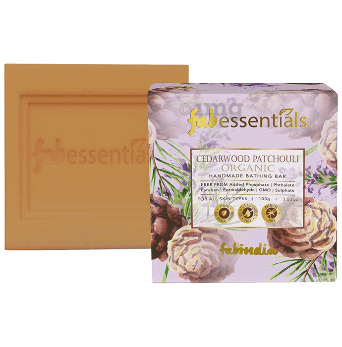 Fabessentials Cedarwood Patchouli Organic Handmade Bathing Bar helps cleanse the skin with a soft lather. Its relaxing smell and organic ingredients help to soothe the skin