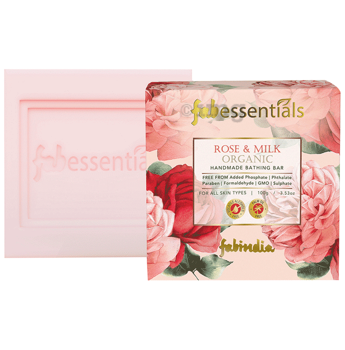 Fabessentials Rose & Milk Organic Handmade Bathing Bar cleanses the skin with a soft lather. The combination of rose and goat's milk creates a luxurious, floral, and silky experience. Goats' milk aids in calming sensitive skin and the rose helps to lock in the skin’s moisture
