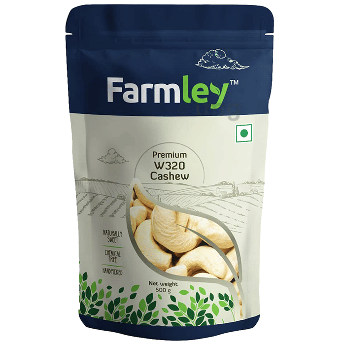 Farmley Premium W320 Cashew is 100% natural and free from adulteration. It is low in sugar, high in fibre, heart-healthy fats, and vegan protein. It has fewer calories and high fibre that keeps you full. Eat them on your own, add them to your favourite dishes, or use them to make cashew-based sauces and desserts. Cashews also contain a variety of vitamins, minerals, and health-protective beneficial plant compounds. It is 100% natural with no adulteration, no chemicals, no preservatives, and is non-GMO. It is antioxidant-rich and has a creamy texture.
