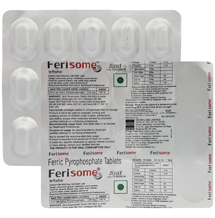 Information about Ferisome Ferric Pyrophosphate Tablet | Mineral Support | Helps Relieve Fatigue Tablet